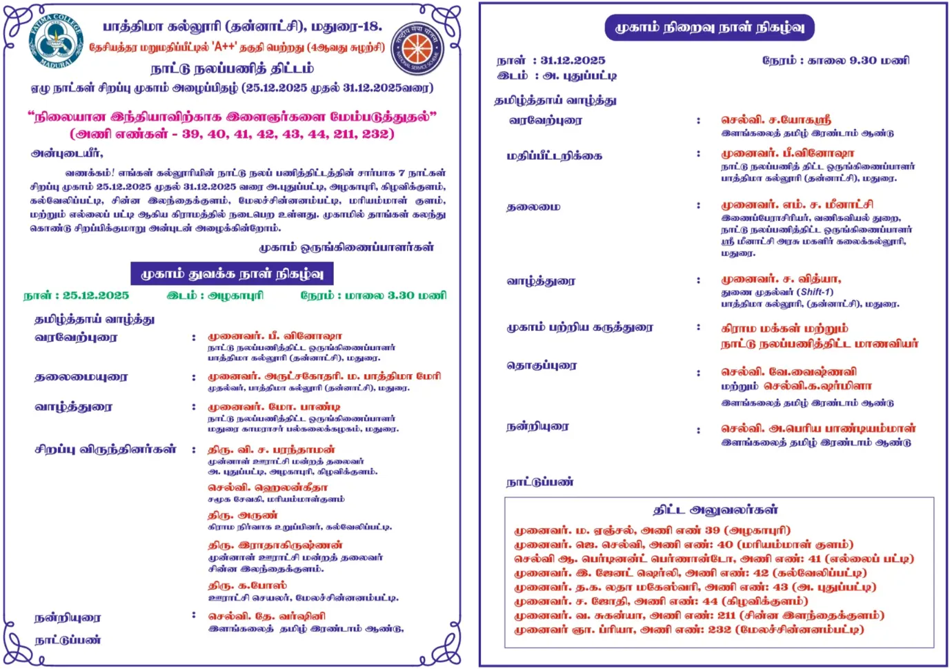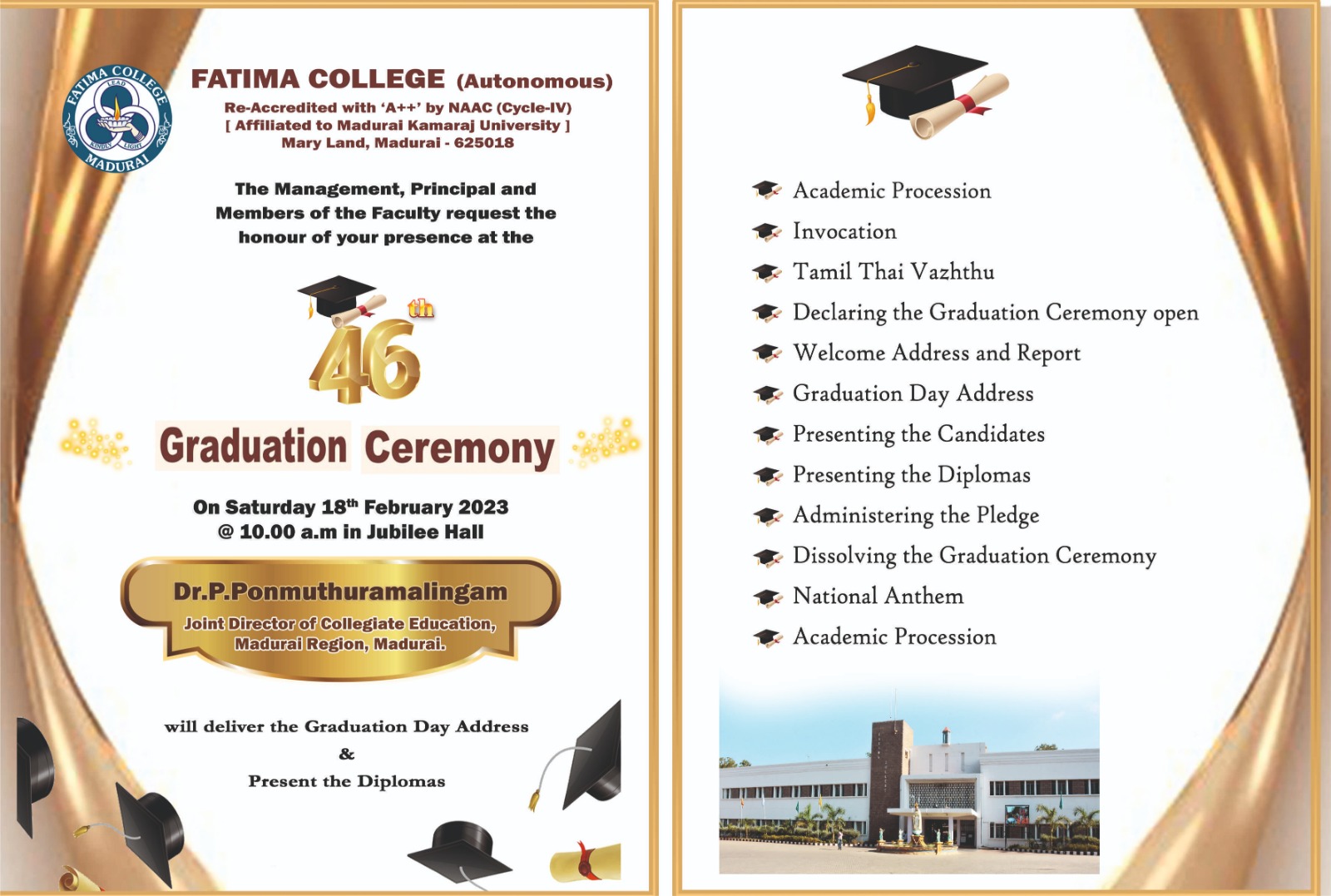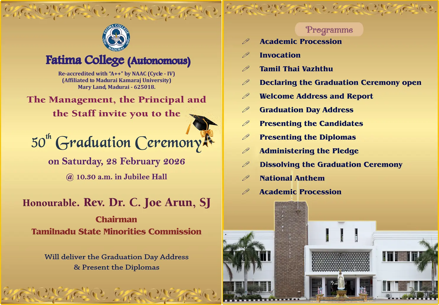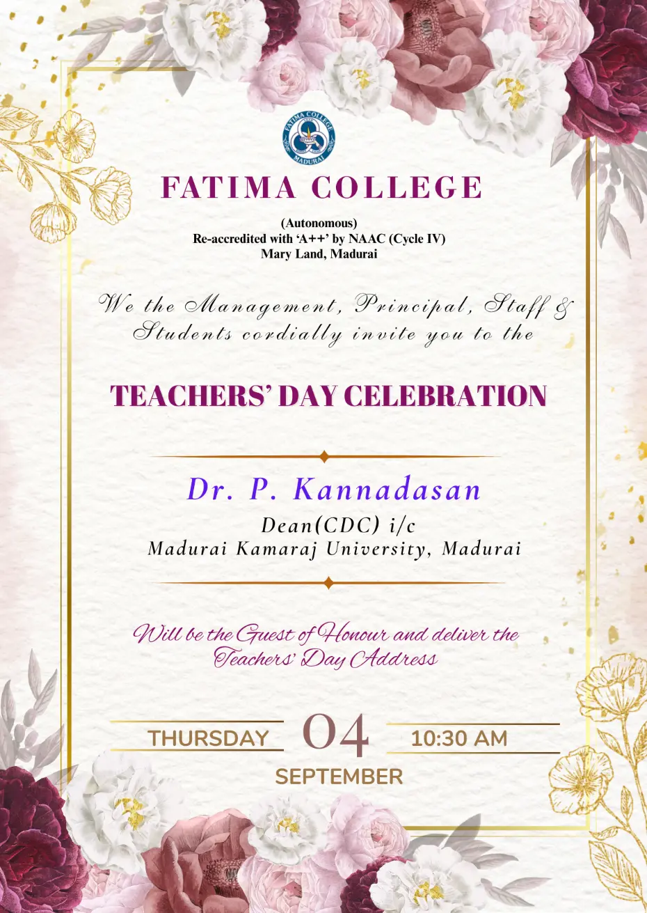 The College reopened for this Academic Year 2025 – 2026 on June 16, 2025 (Monday) for II & III UG and II PG students. |