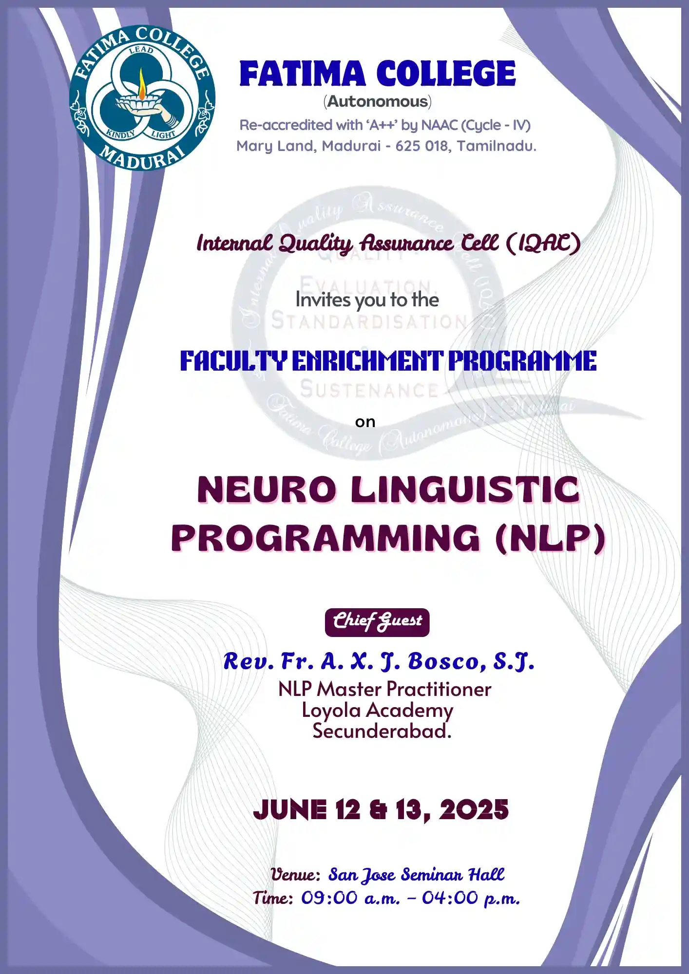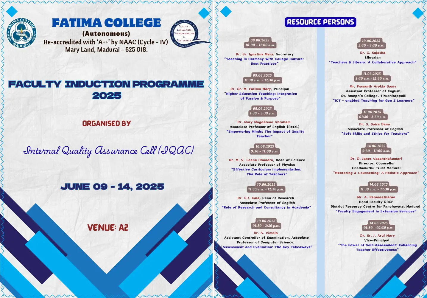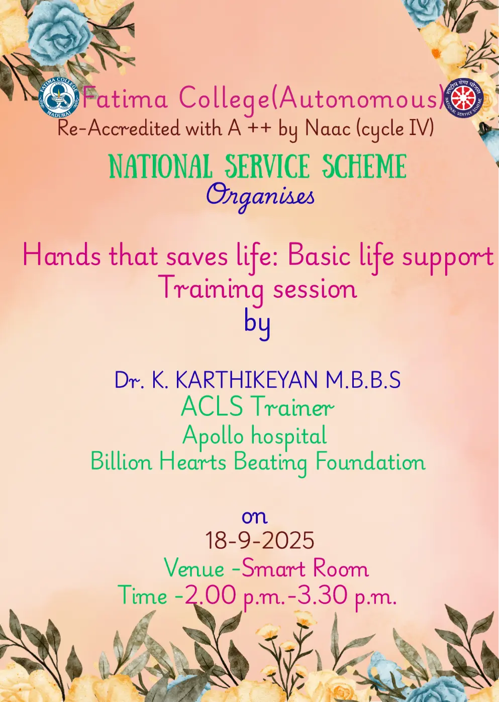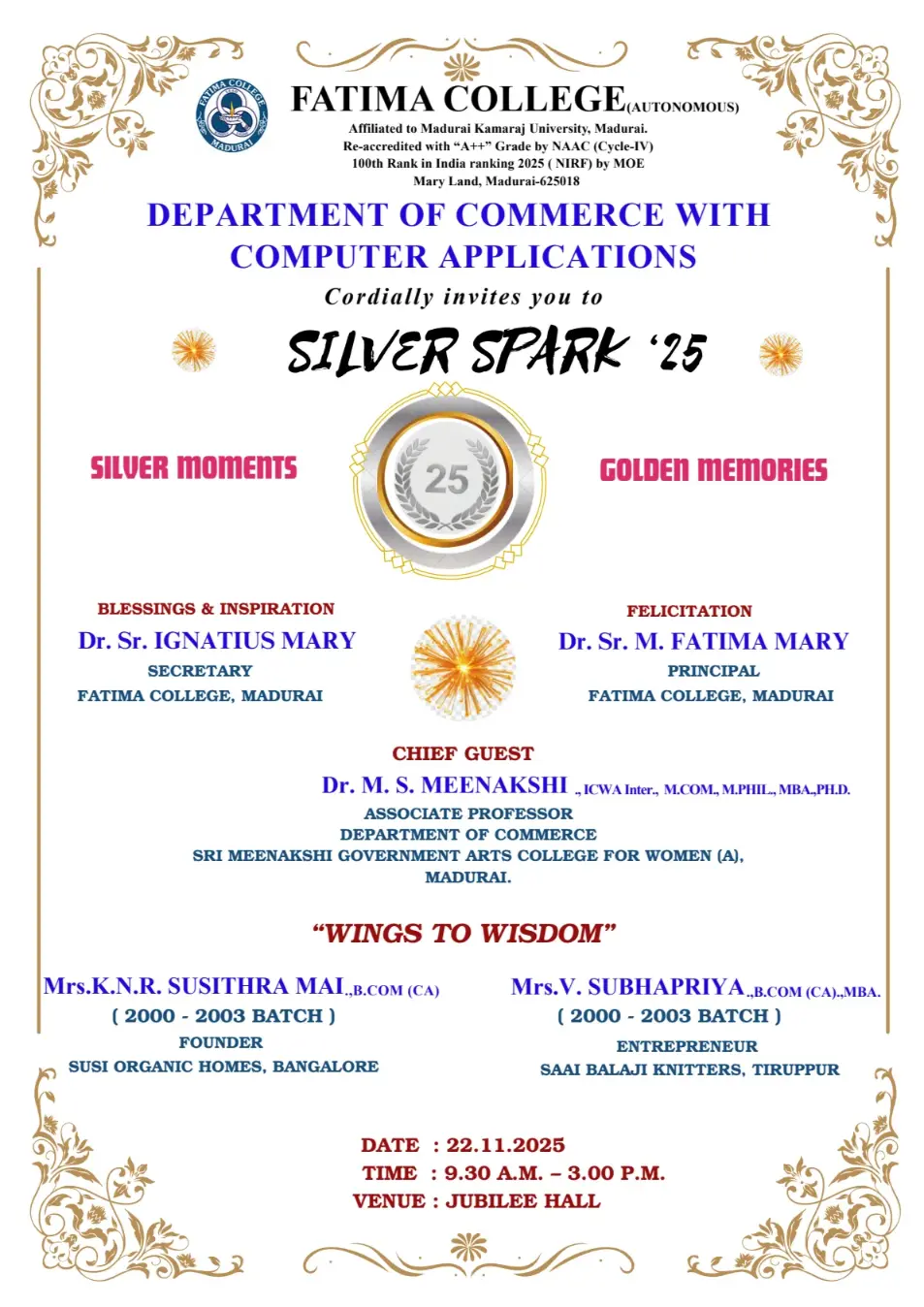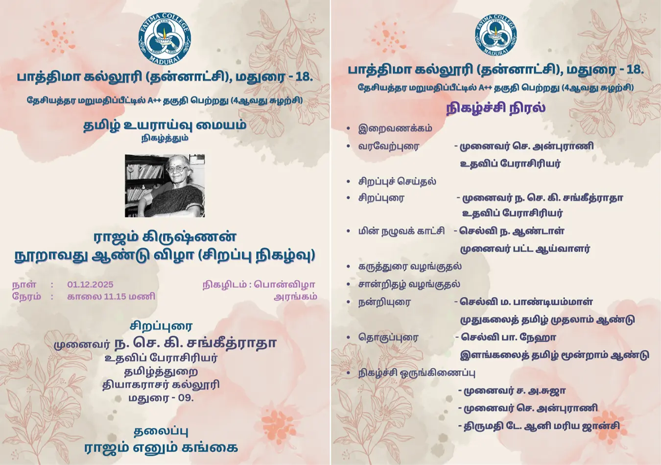 The College reopened for this Academic Year 2025 – 2026 on June 16, 2025 (Monday) for II & III UG and II PG students. |
