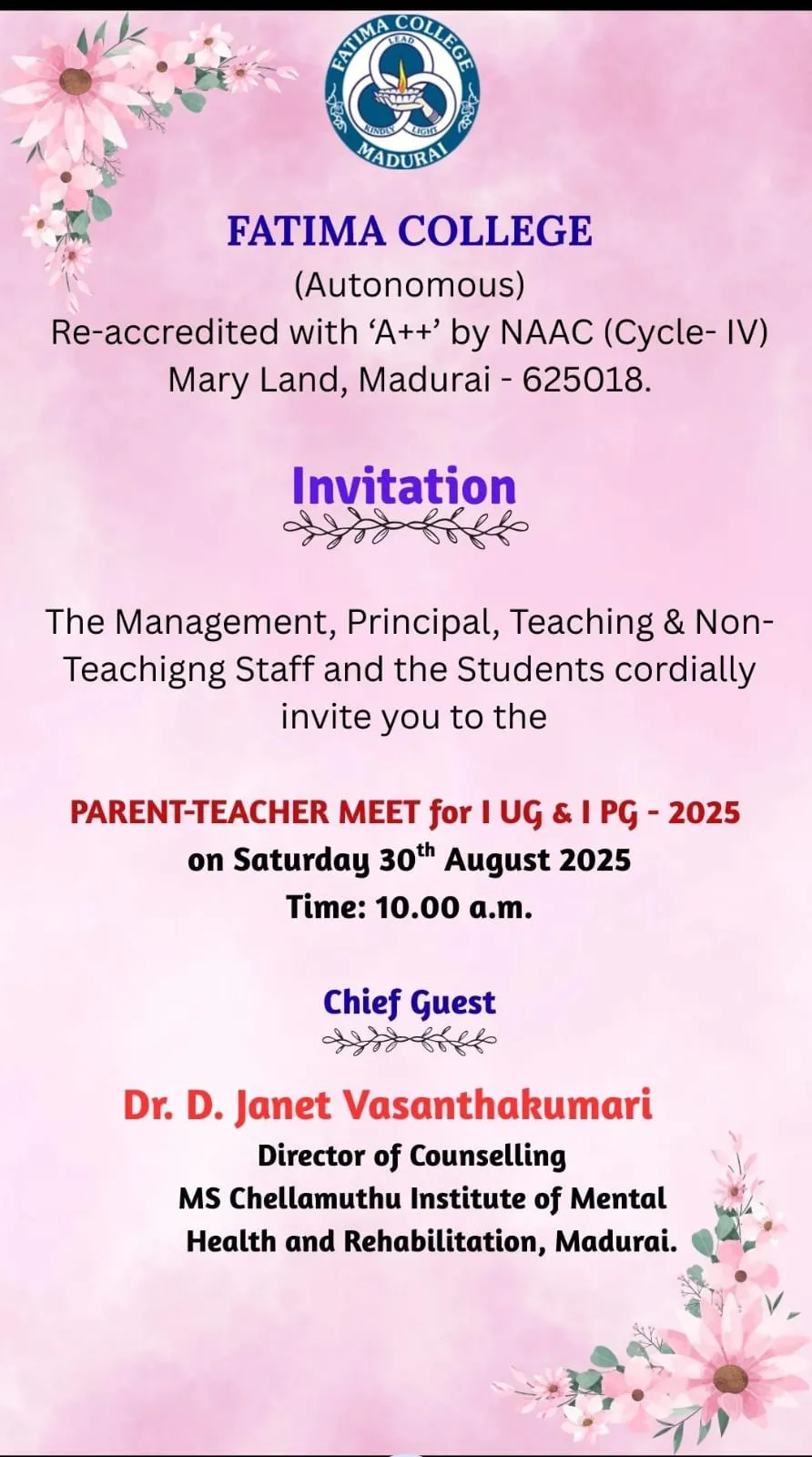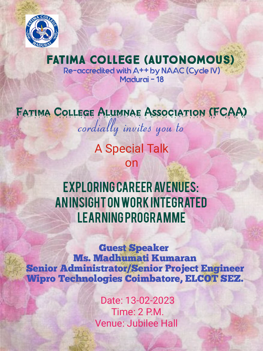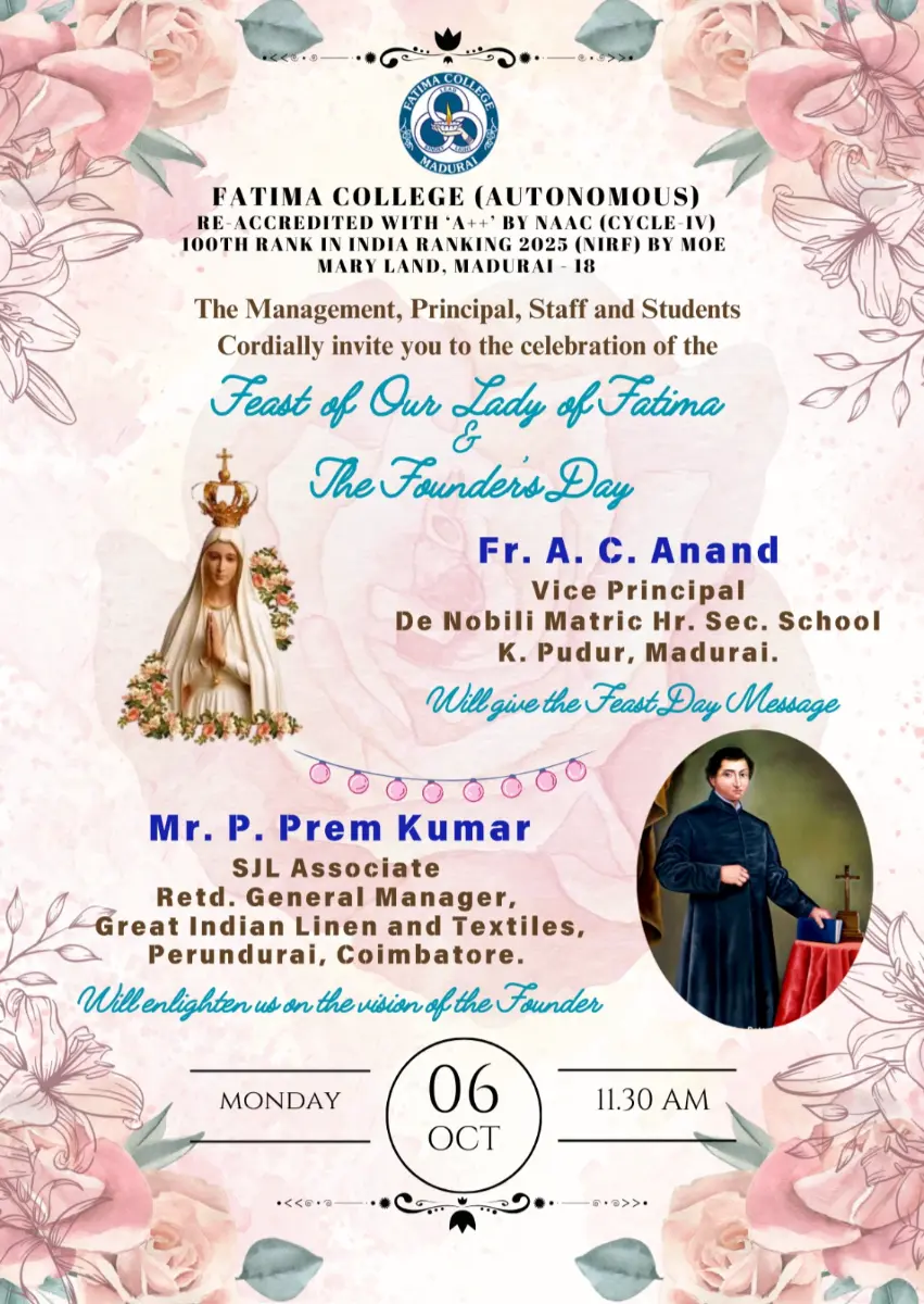 | Invitation: Fatima College Alumnae Association (FCAA) organized an “Annual Alumnae Meet 2023” on June 24, 2023. Click here to Register… |