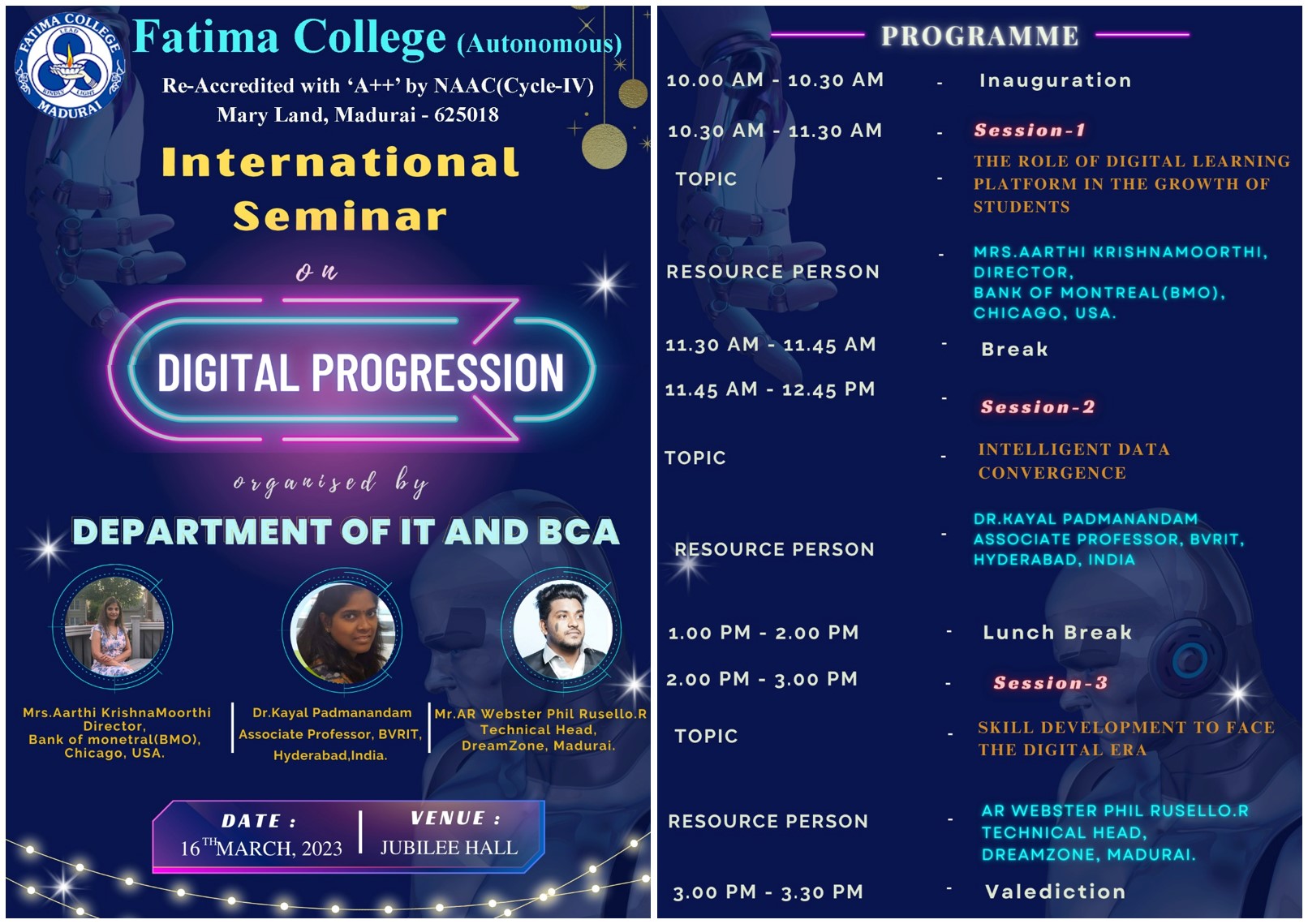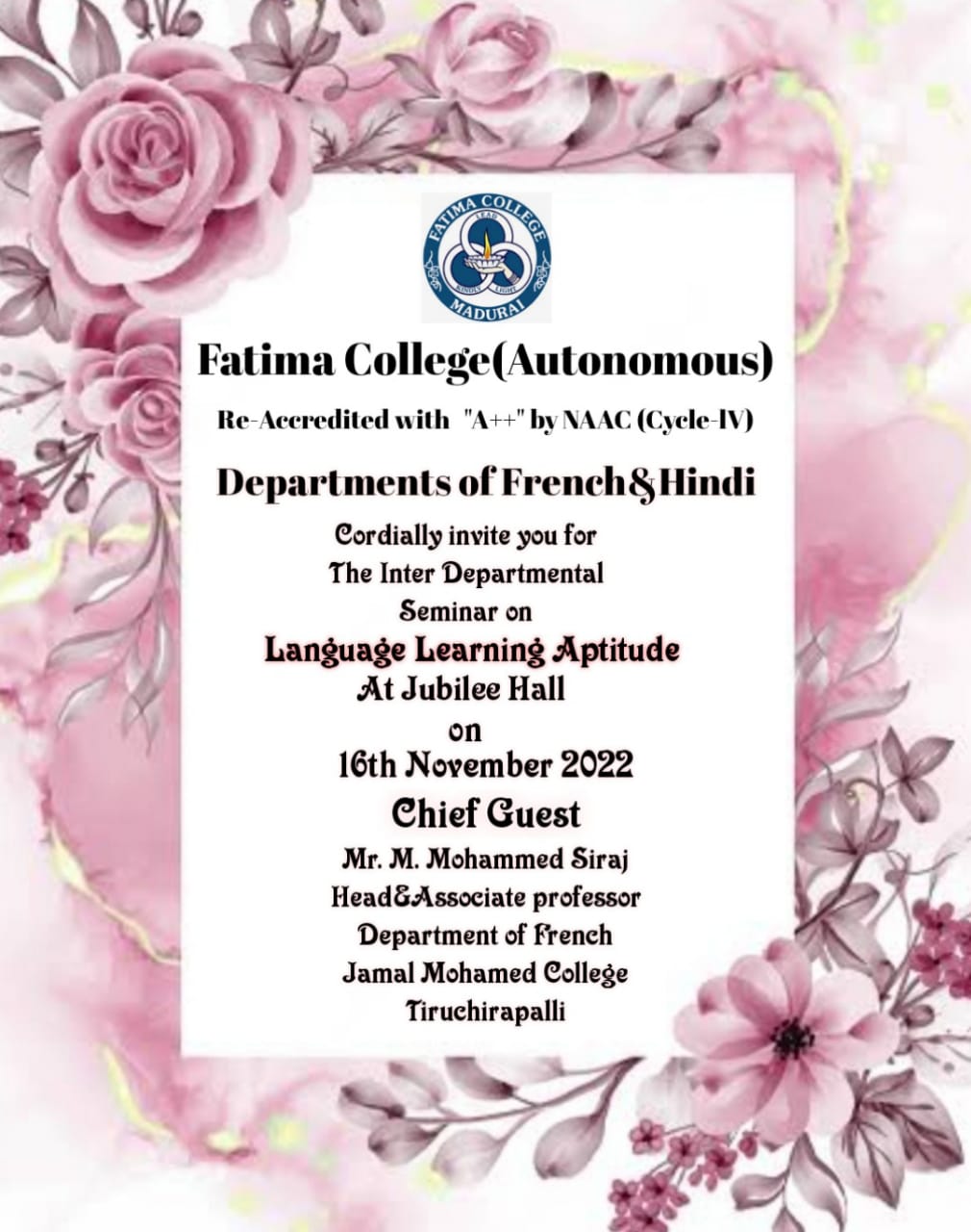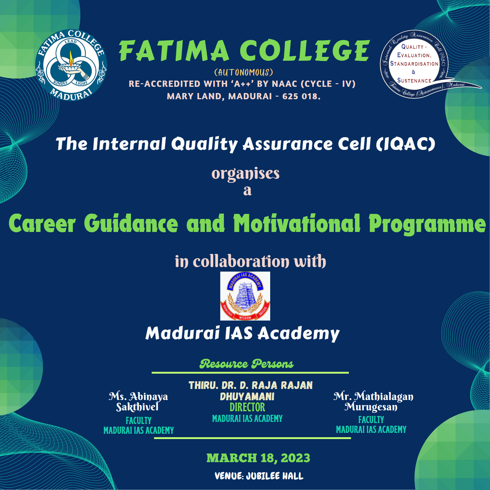 | Invitation: Fatima College Alumnae Association (FCAA) organized an “Annual Alumnae Meet 2023” on June 24, 2023. Click here to Register… |