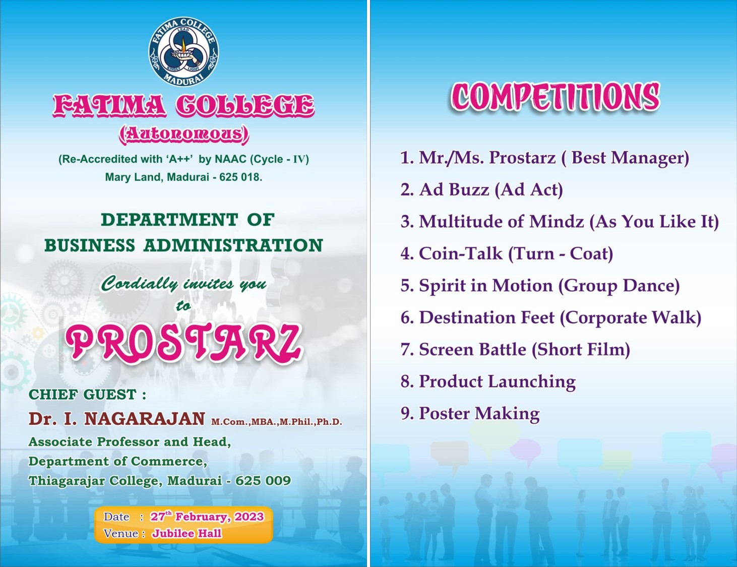 | Invitation: The College celebrated 70th Annual Sports Day on Mar. 11, 2023. |