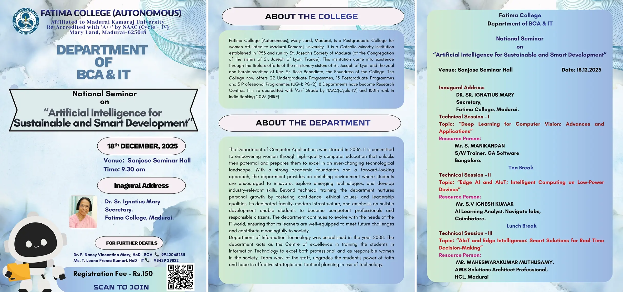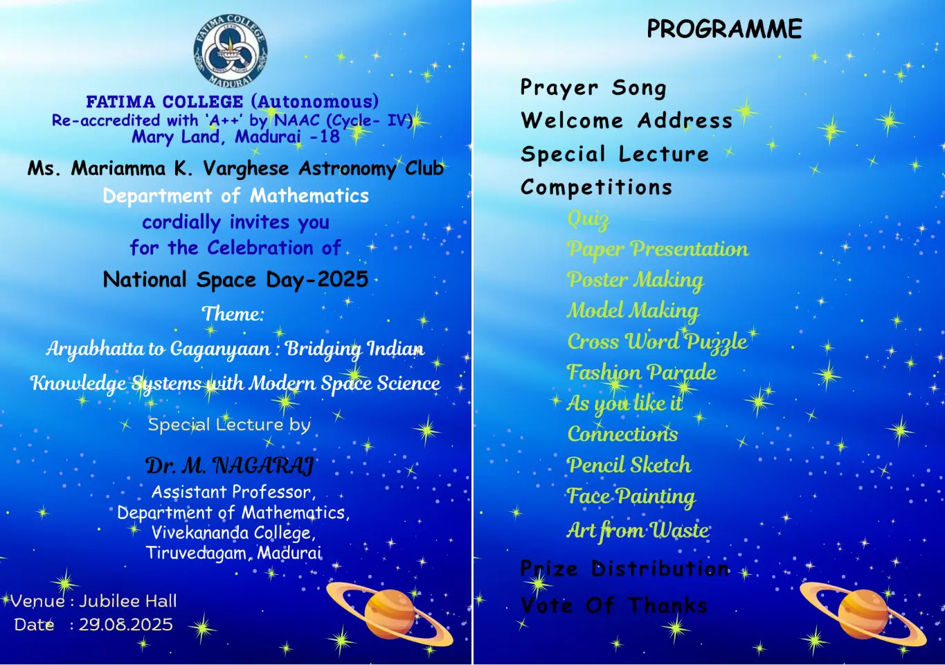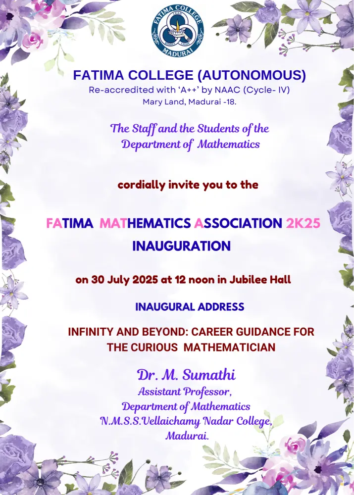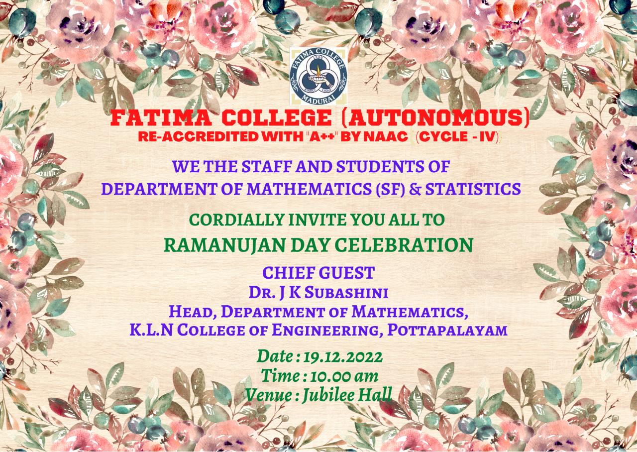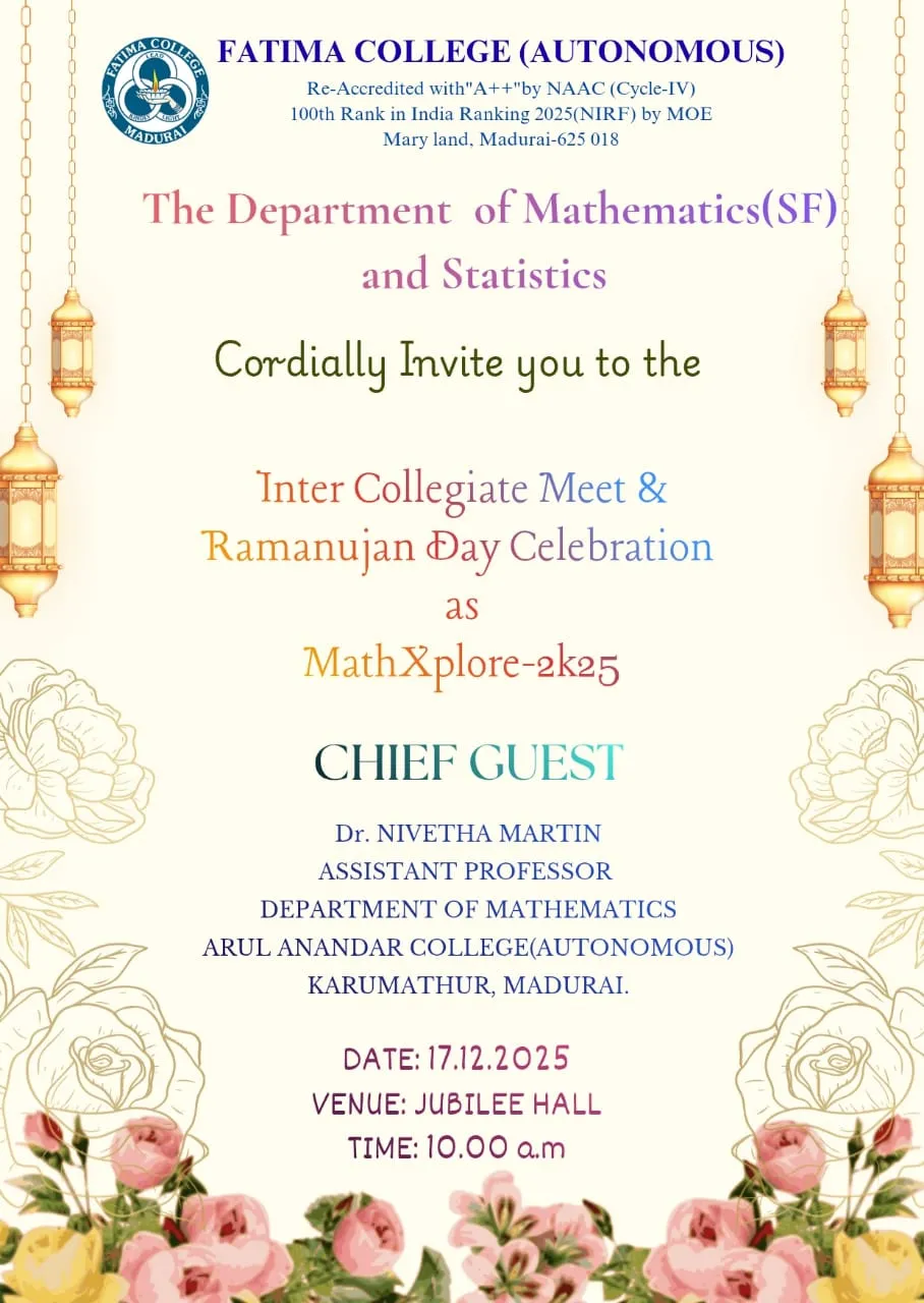 Invitation: Departments of Mathematics (SF) and Statistics jointly organized an Inter-Collegiate Meet and Ramanujan Day Celebration as MathXplore-2K25 on Dec. 17, 2025. Brochure… |
