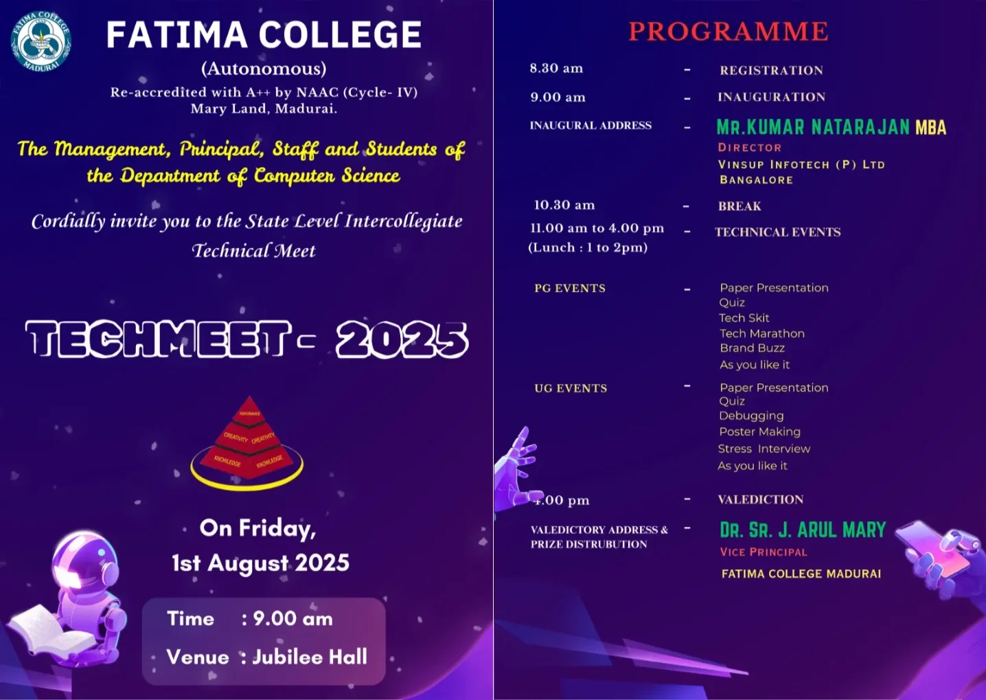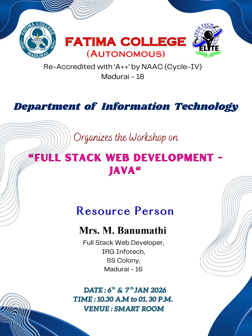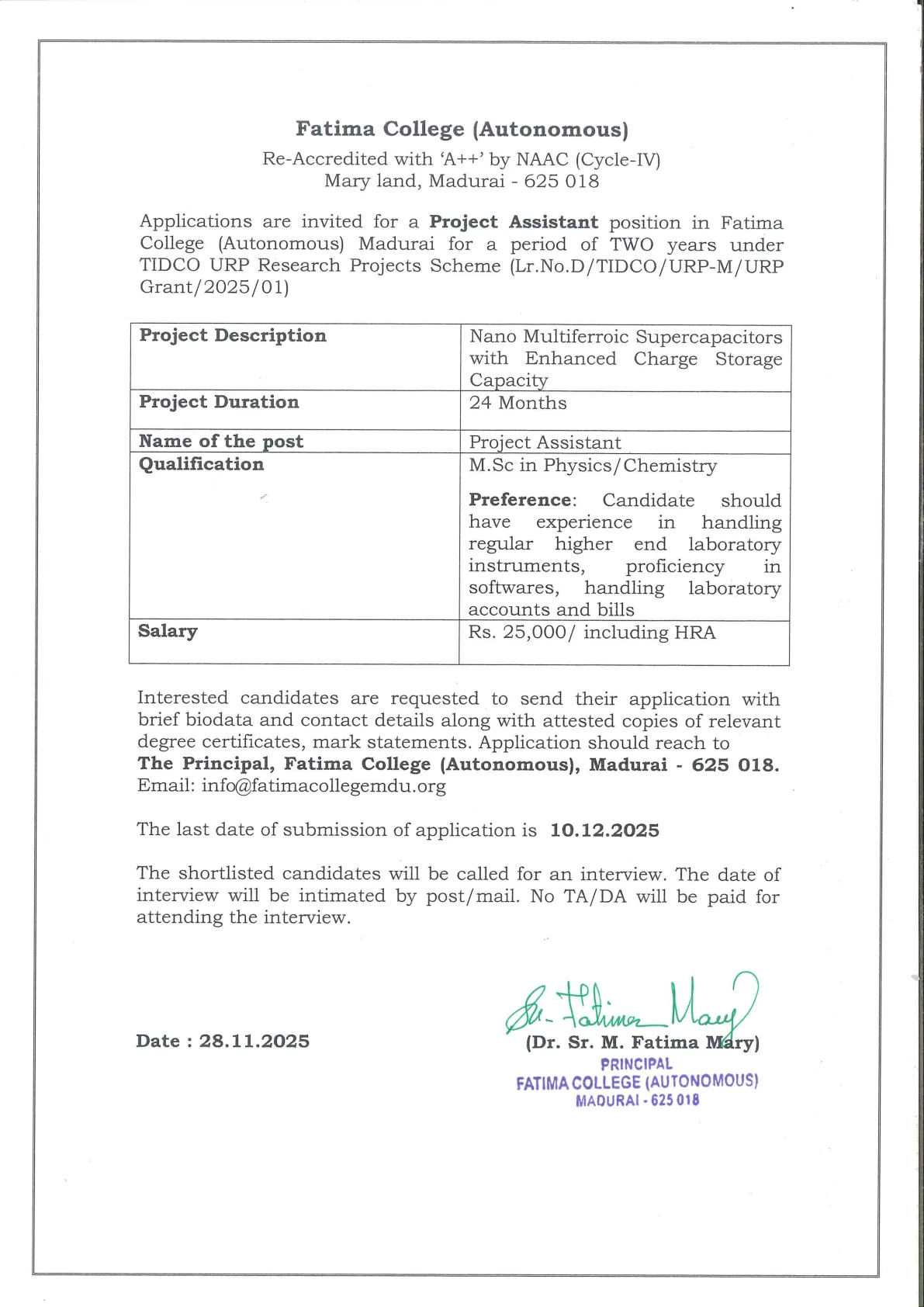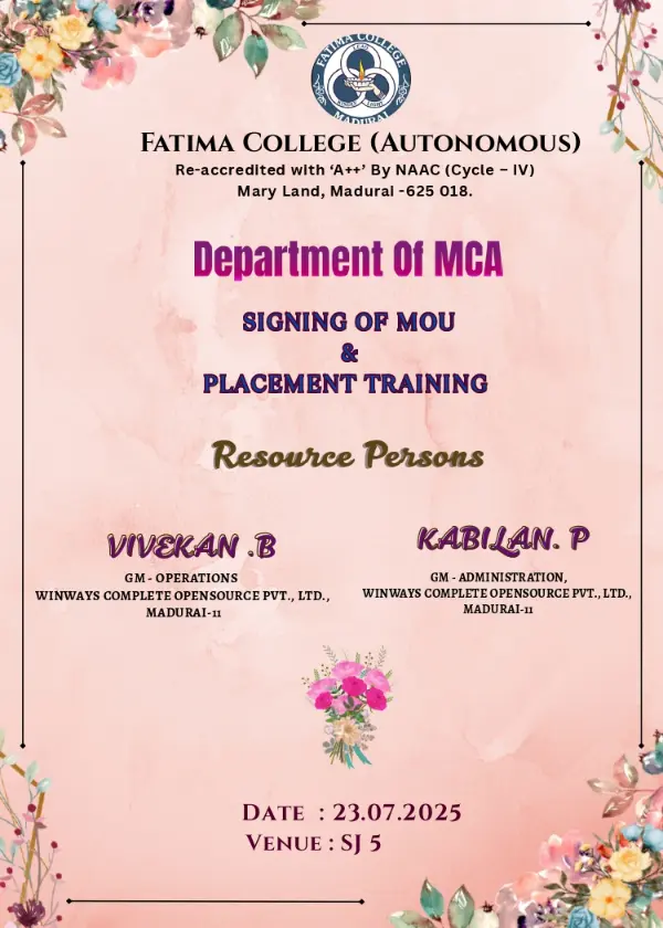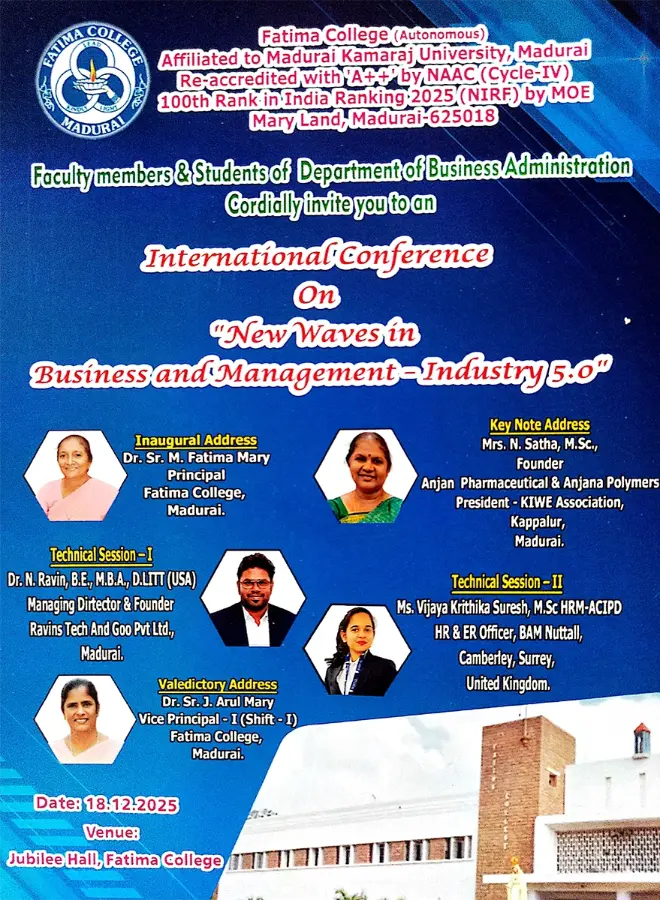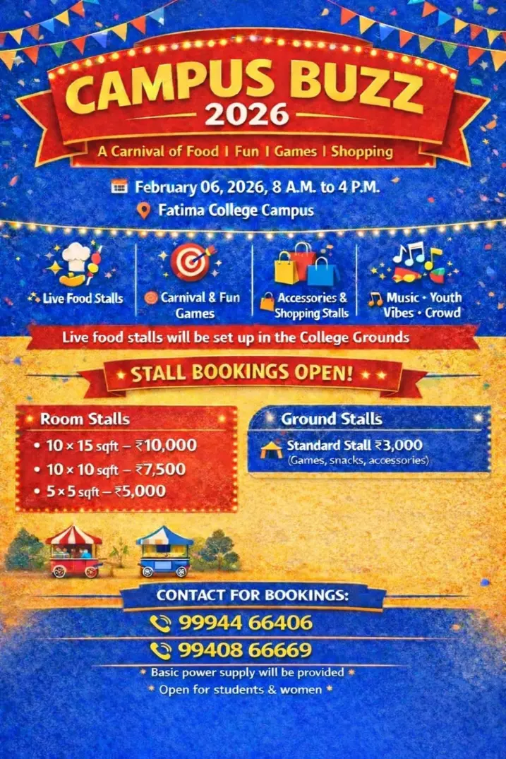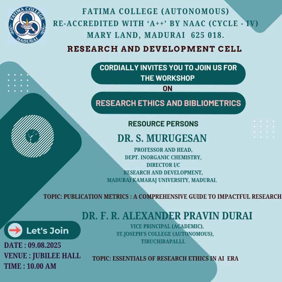 Fatima College proudly announces the sanctioning of two TIDCO (Tamil Nadu Industrial Development Corporation) Projects – an Institute–Industry initiative under the University Research Park – on Dec. 06, 2025.. |