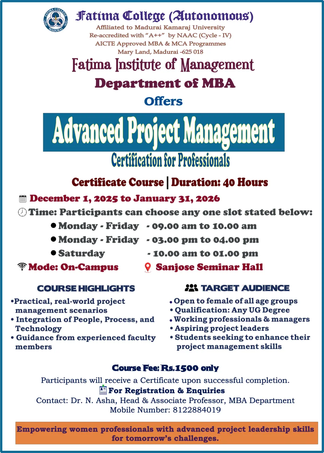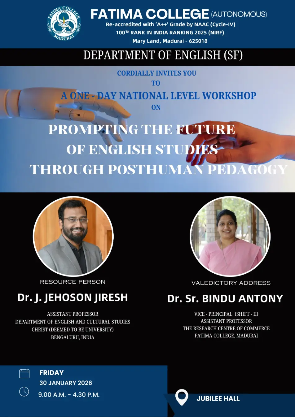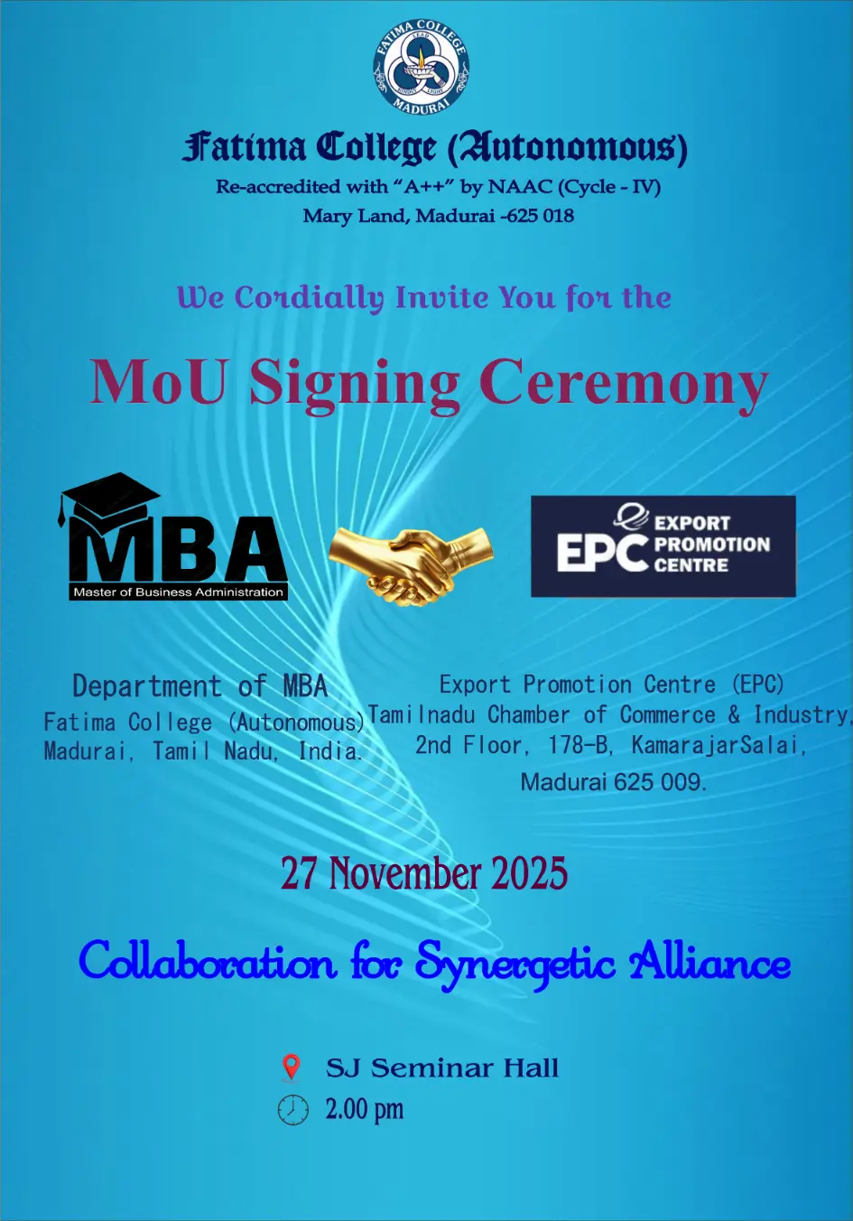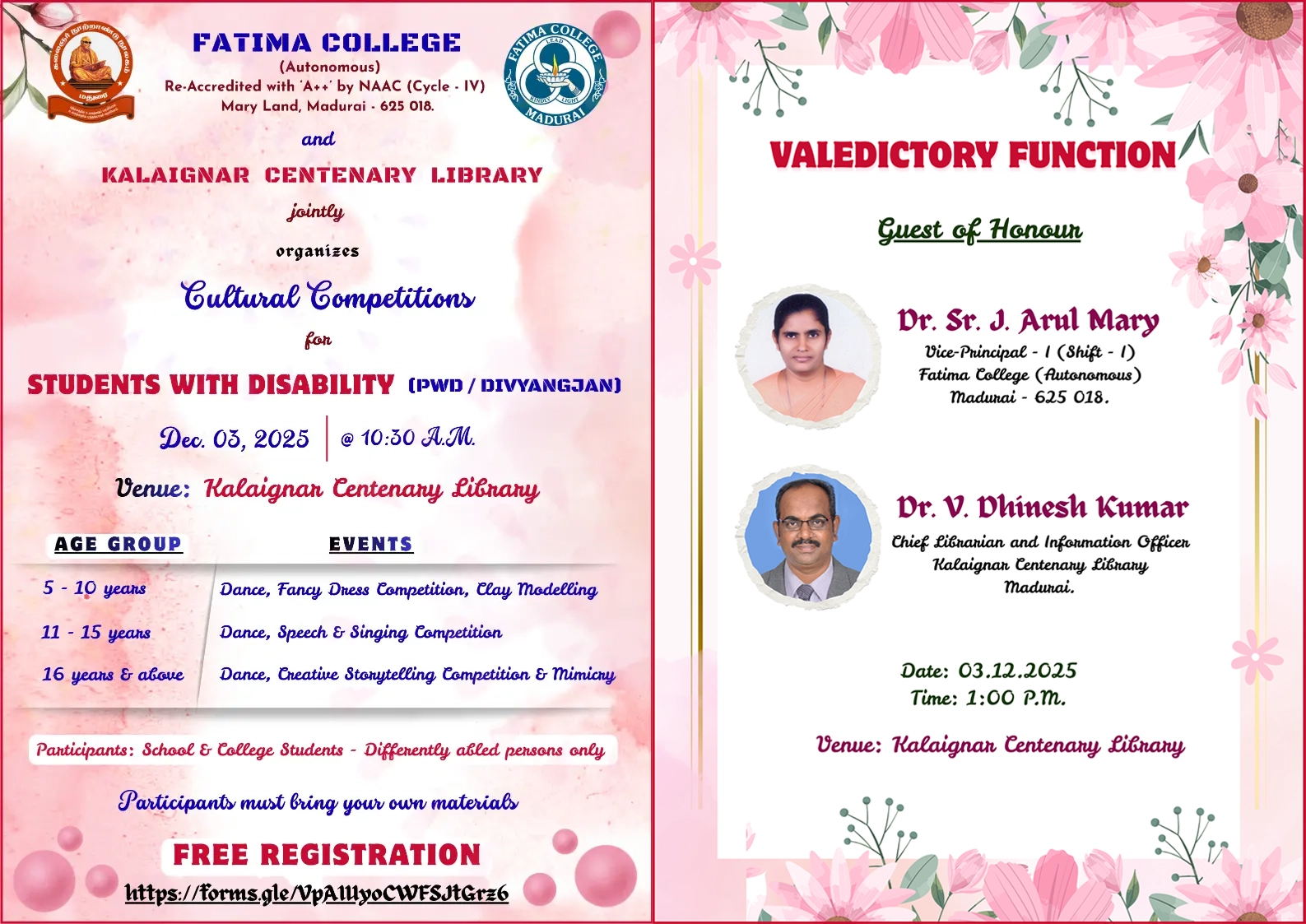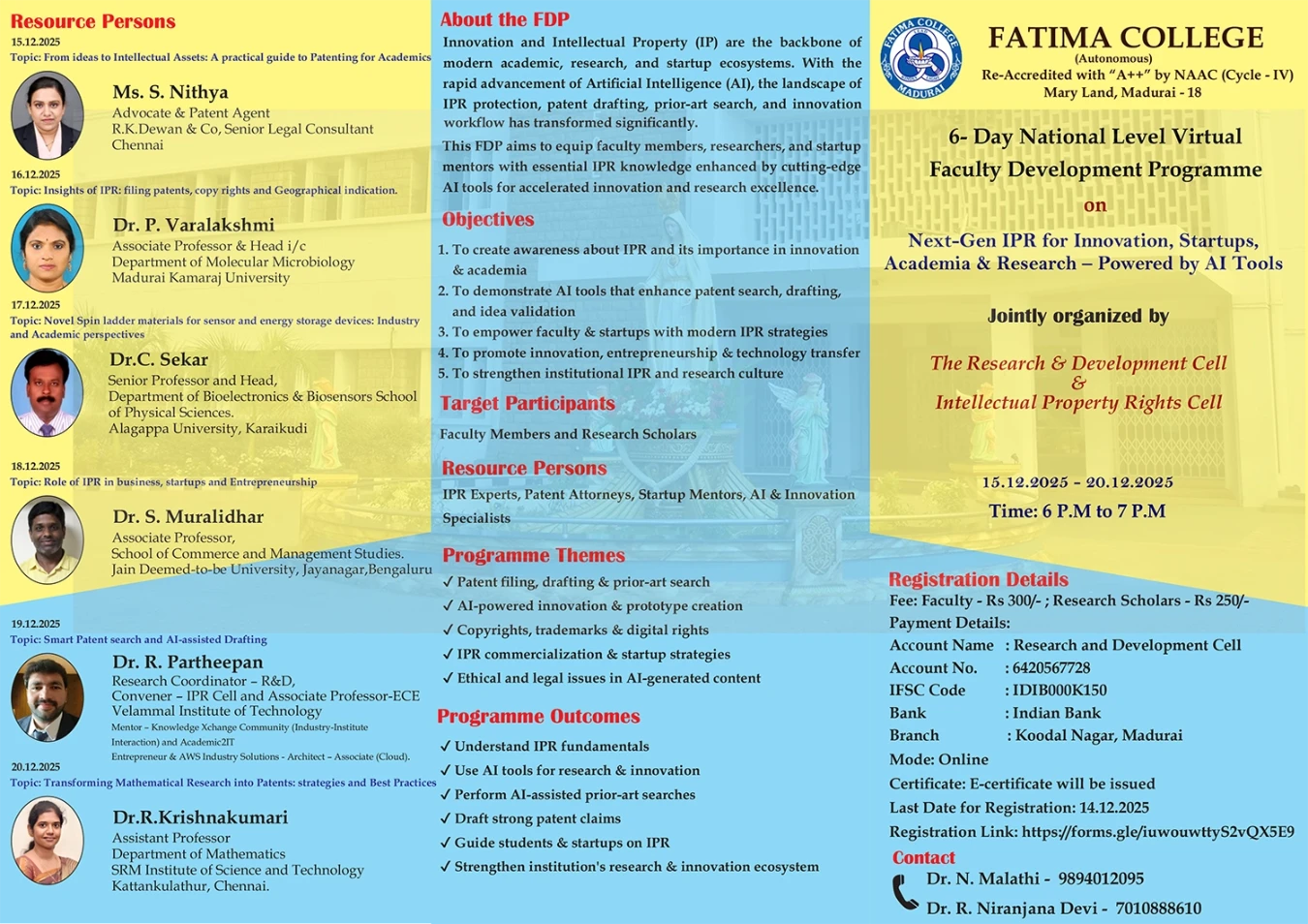 Fatima College proudly announces the sanctioning of two TIDCO (Tamil Nadu Industrial Development Corporation) Projects – an Institute–Industry initiative under the University Research Park – on Dec. 06, 2025.. |