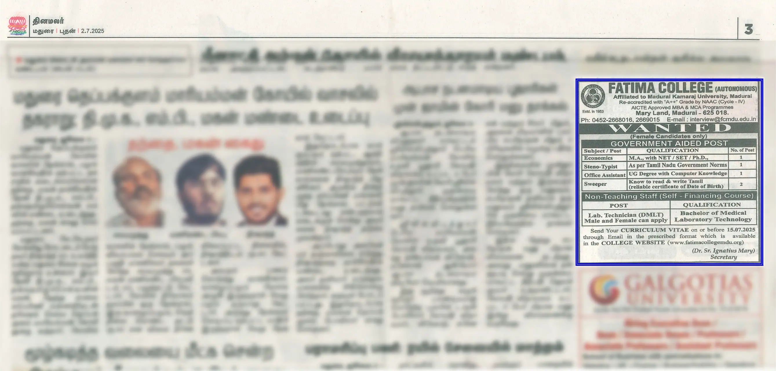 | Call for Applications: Non-Teaching Post recruitment – Advertisement, Application & Instructions for the Academic Year 2025 – 2026. The Last date to apply: July 15, 2025. |