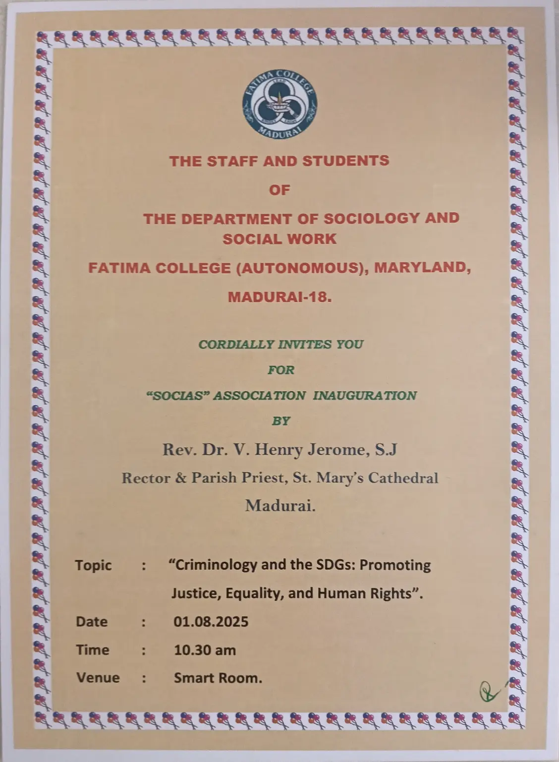 | Invitation: Inauguration of Human Rights Cell on July 10, 2025. |